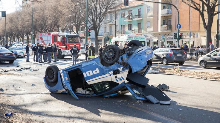 Trei fotbalişti de la Juventus Primavera au intrat cu bolidul în maşina poliţiei şi au răsturnat-o