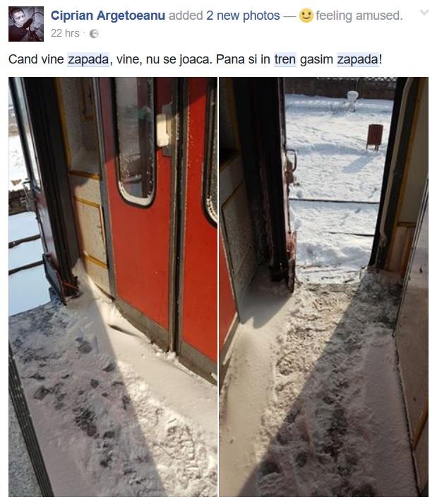 Troiene de zăpadă în trenurile româneşti. Călătorii furioşi publică pe Facebook imagini incredibile