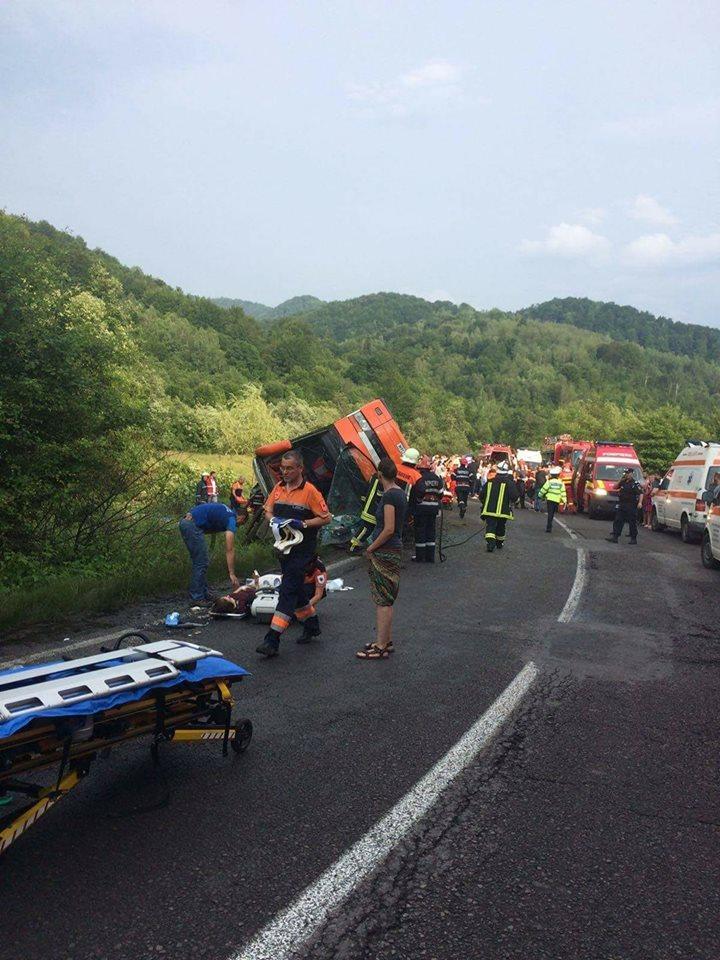 Autocar cu 37 de persoane răsturnat în apropiere de Predeal. Sunt cel puţin 16 victime. Şoferul a pierdut controlul maşinii într-o curbă