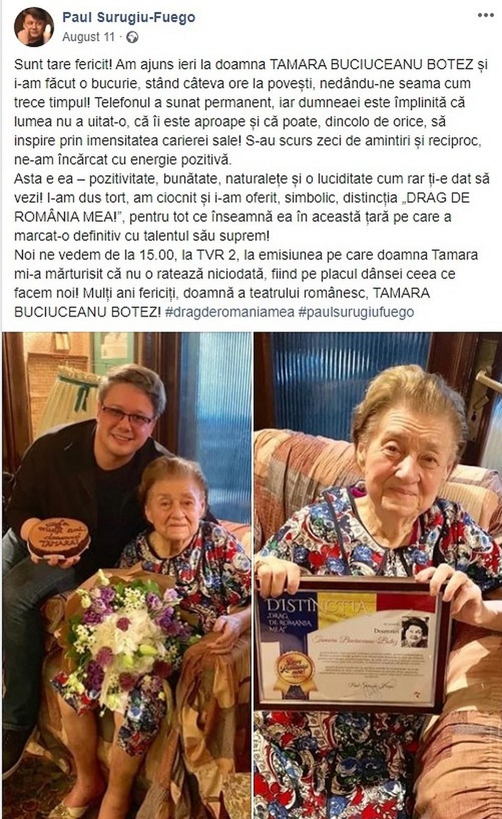 Ultimele imagini cu Tamara Buciuceanu au fost postate de Fuego | Sursa foto: Facebook/Paul Surugiu-Fuego
