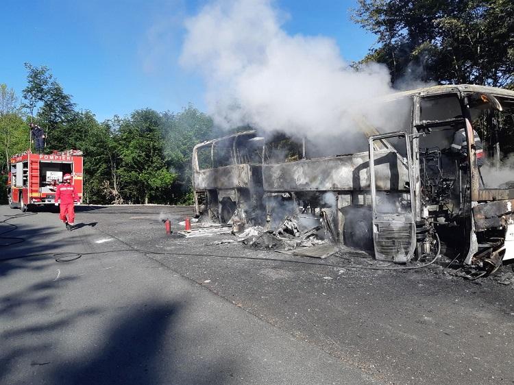 Un autocar plin cu 50 de pelerini a luat foc în mers, pe DN 18 Pasul Gutâi, în Maramureş. Pompierii intervin de urgenţă la faţa locului