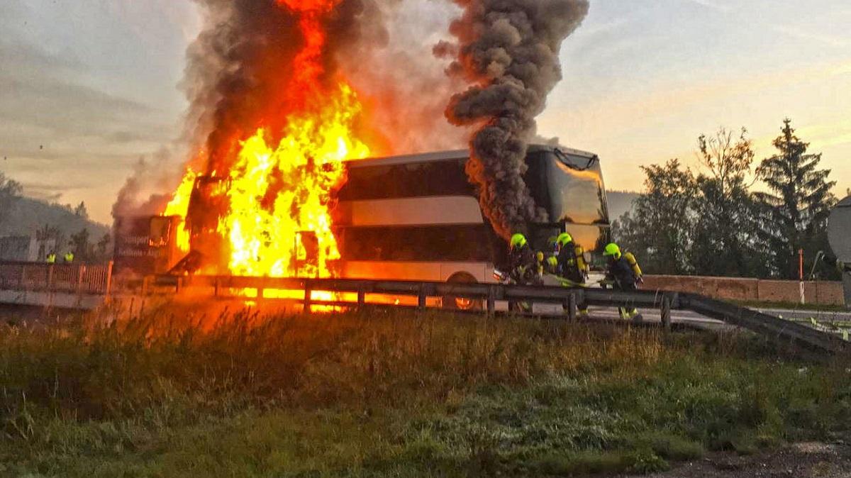 Un autocar românesc a explodat, pe o autostradă din Austria. Flăcări uriaşe au înghiţit imediat maşina