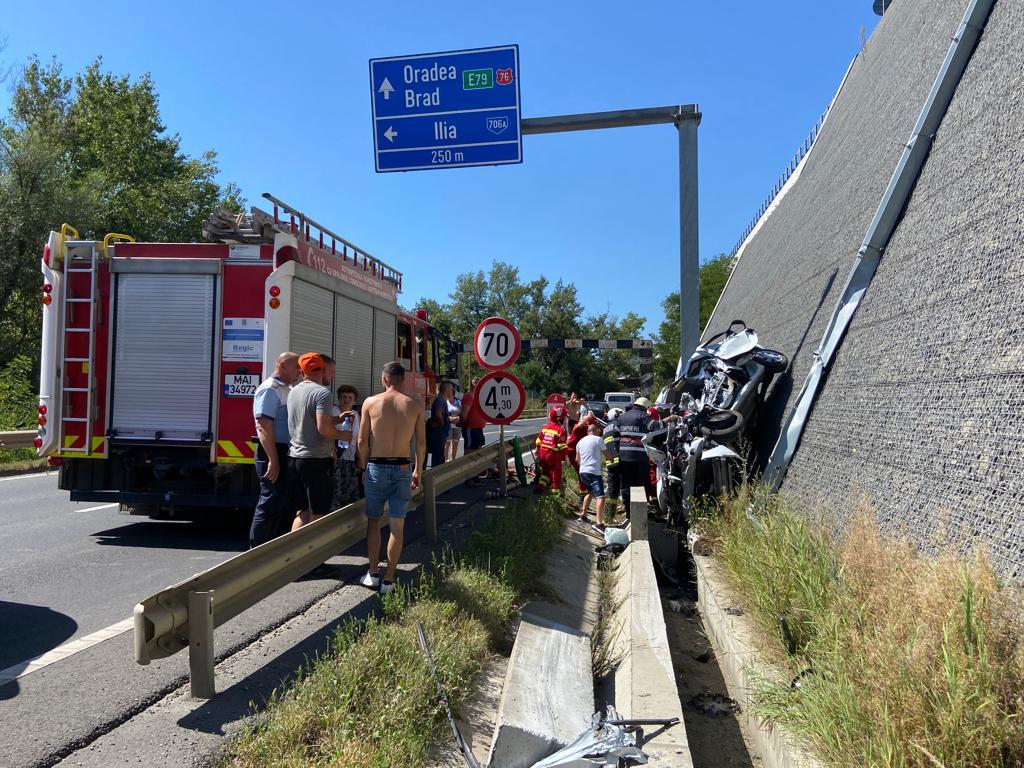 Un bărbat a fost la un pas de moarte, după ce a ieşit cu maşina de pe o şosea din Hunedoara şi s-a izbit direct în zid. Autoturismul a rămas "parcat"