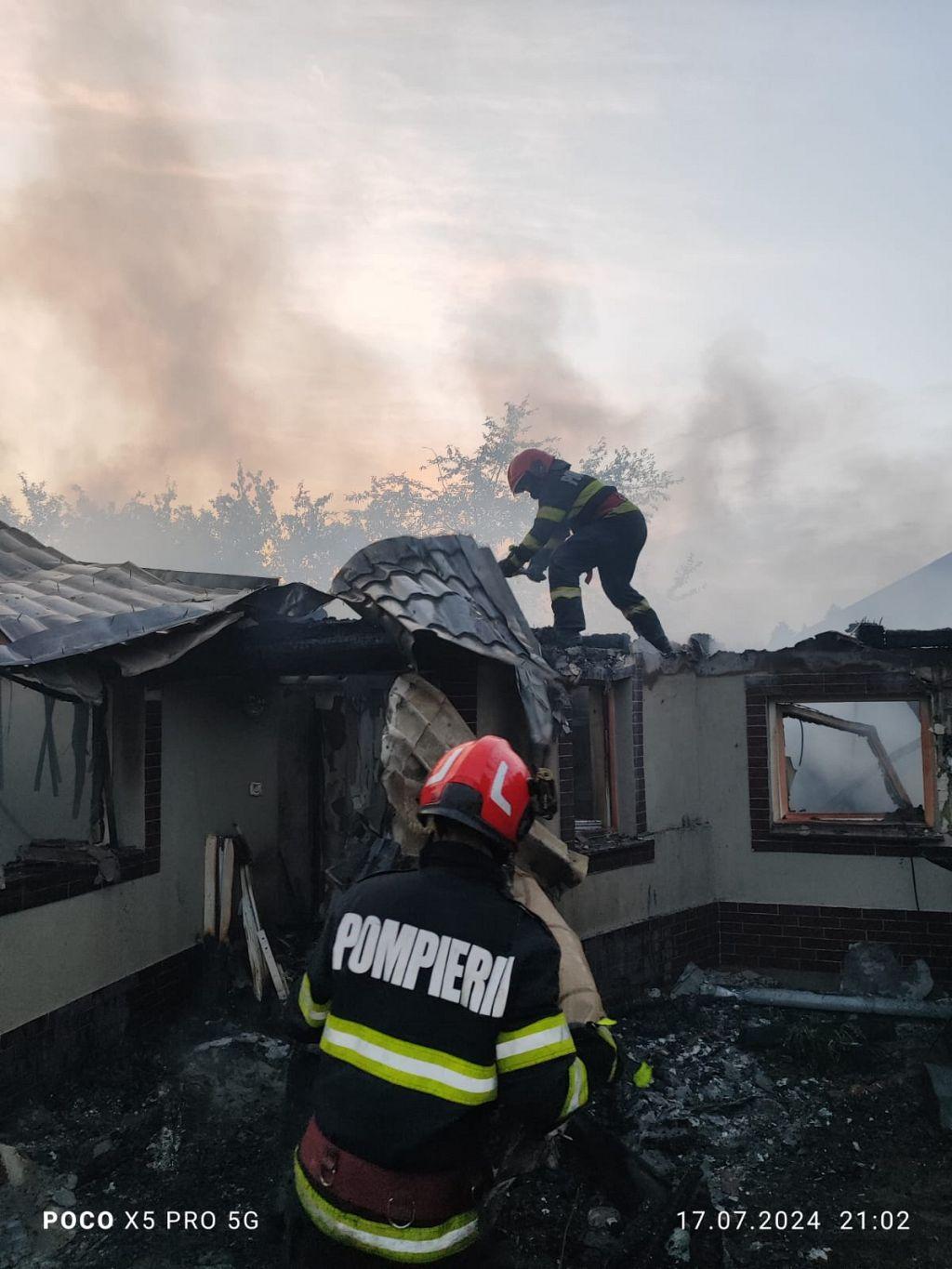 Un bărbat beat şi-a dat foc casei după o ceartă cu soţia la telefon. Flăcările s-au extins şi au ars din temelii şi locuinţa tatălui său