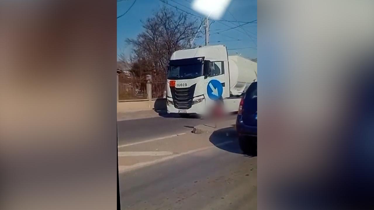 Un bărbat de 39 de ani a murit, după ce a fost lovit şi târât 20 de metri de un TIR, în Galaţi. Ultimele secunde din viaţa sa au fost surprinse de un şofer