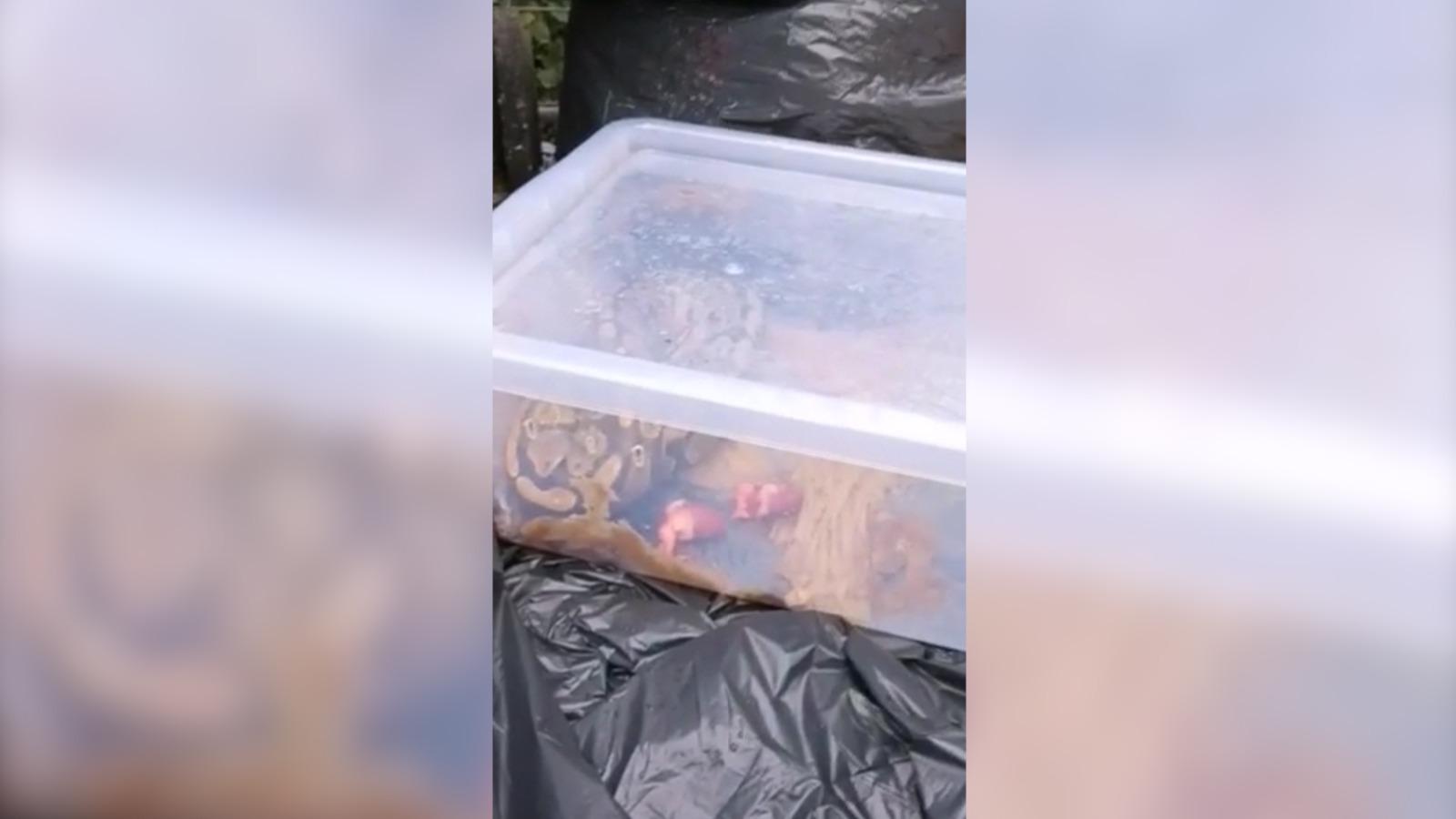 Un bărbat din Oradea a dat peste trei pitoni în tomberon când își arunca gunoiul. Două dintre reptile erau vii | Sursa foto: ebihoreanul