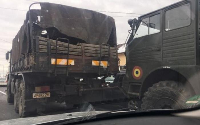 Un camion al Armatei a distrus două autoturisme, pe o şosea din Braşov
