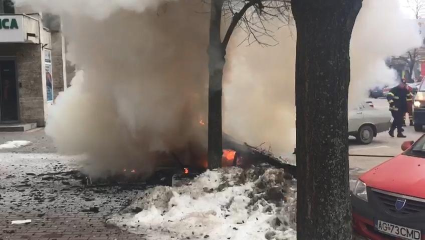Un chioşc stradal din Piteşti a sărit în aer. Vânzătoarea, aruncată în stradă de suflul exploziei