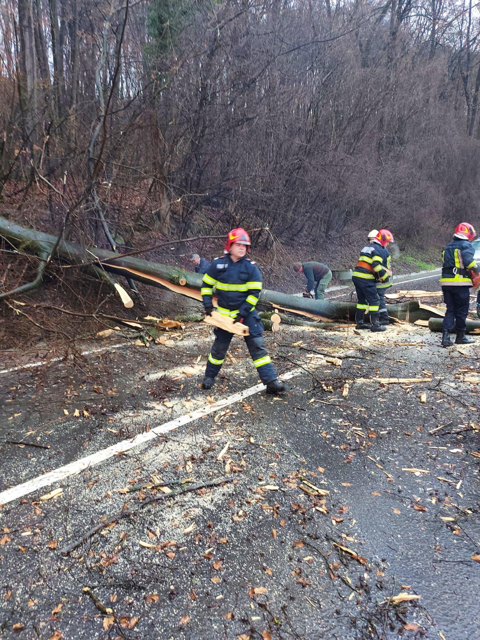 Un copac s-a prăbușit peste o mașină aflată în mers, în Sighișoara. O creangă a străpuns parbrizul, în dreptul șoferului