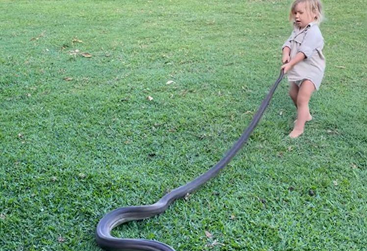 Un copil de 2 ani a fost filmat în timp ce trăgea un piton de coadă, sub privirile tatălui, în Australia | Sursa foto: Instagram