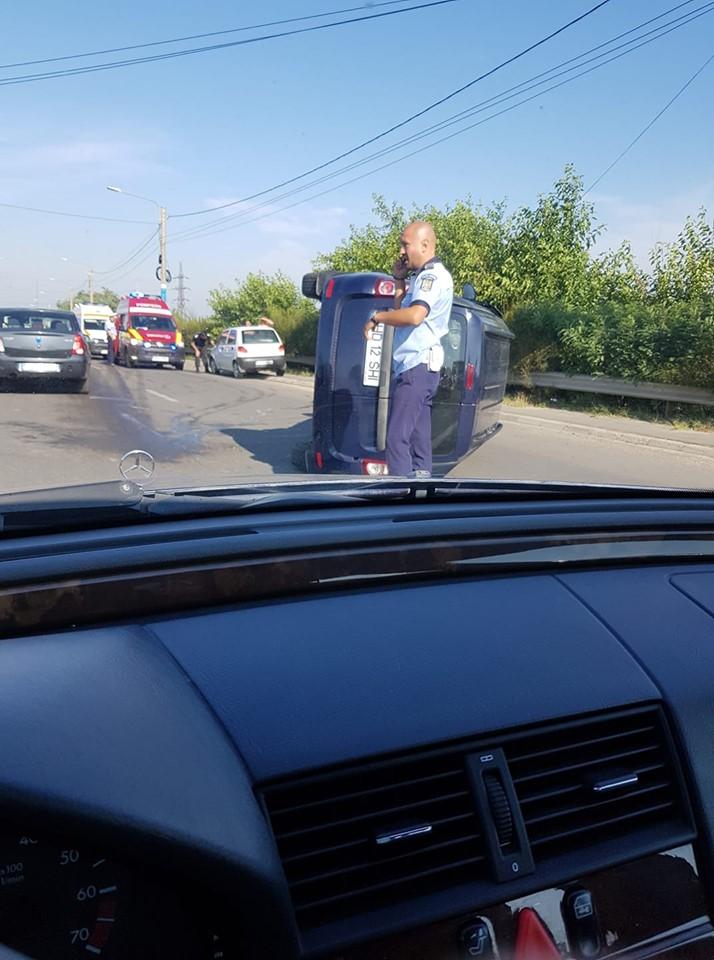 Un Matiz a răsturnat un Logan MCV, la Craiova, după ce l-a lovit în plin