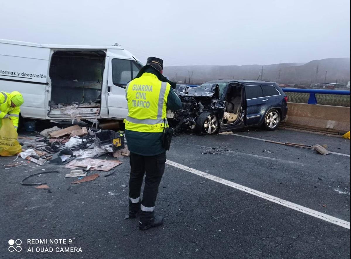 Un medic anestezist a murit în drum spre spital, după ce a intrat cu SUV-ul în duba unui român, pe un drum din Spania. Ambii șoferi au sfârșit pe loc | Sursa foto: Guardia Civil via cadenaser.com