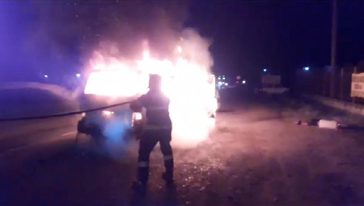 Un microbuz a zbucnit în flăcări, în Vaslui. Opt persoane se aflau în interiorul autovehiculului