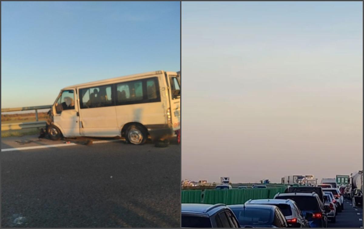 Un microbuz cu 7 pasageri, implicat într-un accident pe autostrada A3. Un pneu ar fi explodat în mers