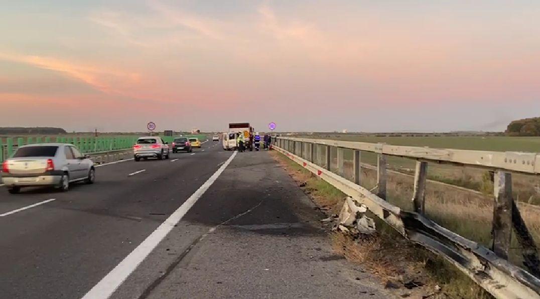 Un microbuz cu 7 pasageri, implicat într-un accident pe autostrada A3. Un pneu ar fi explodat în mers