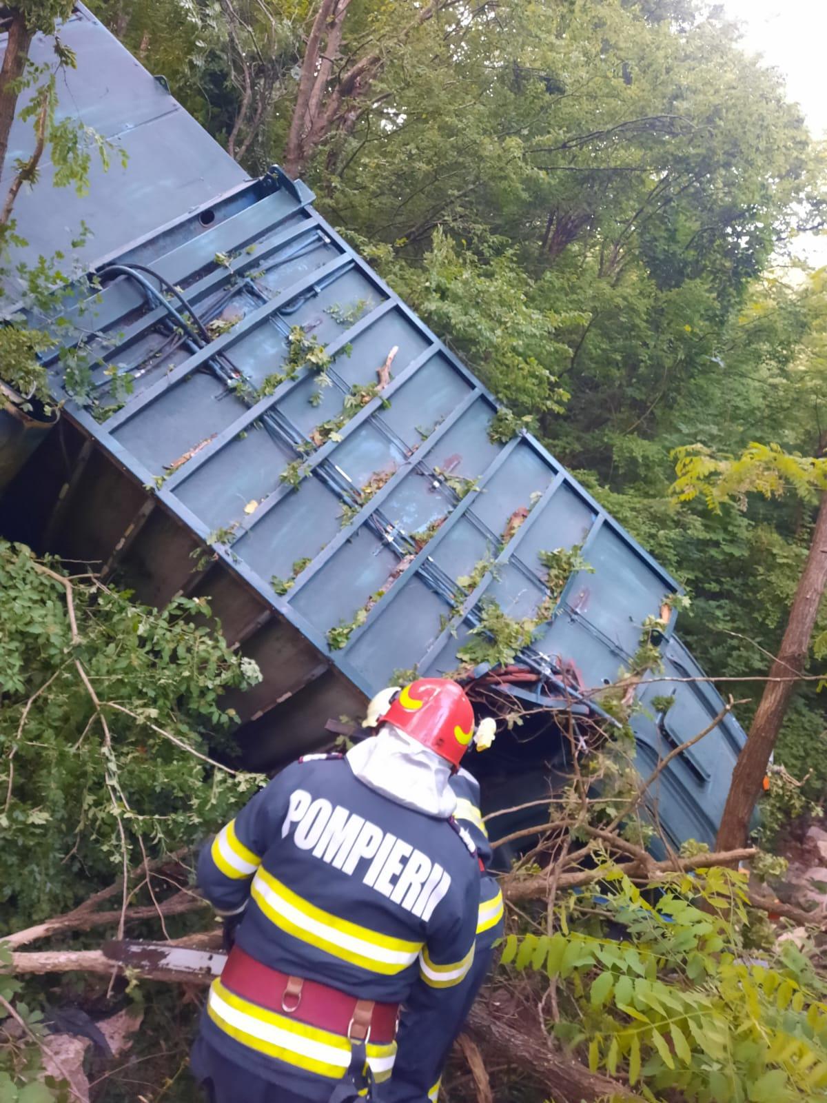 Un mort şi doi răniţi, după ce o maşină de gunoi a căzut într-o râpă, în Caraș-Severin