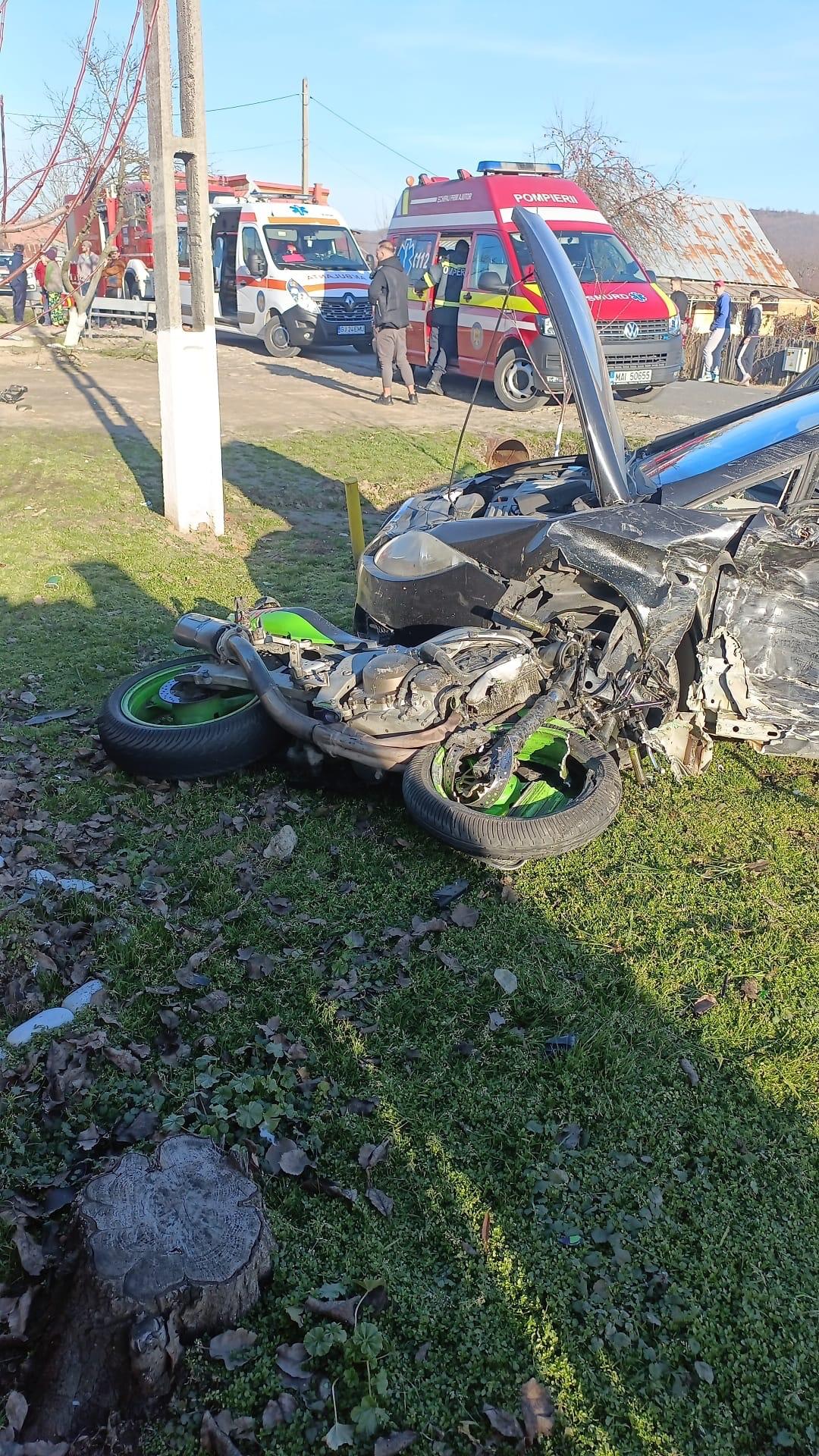 Un motociclist de 33 de ani a murit în prima zi a anului, după ce s-a izbit puternic de un autoturism, în Gorj | Sursa foto: ISU Gorj