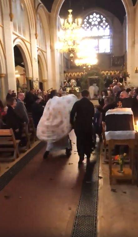 Un preot binecuvântează enoriaşii de pe trotinetă! Imagini inedite surprinse în biserică, în a doua zi de Paşte (Video)