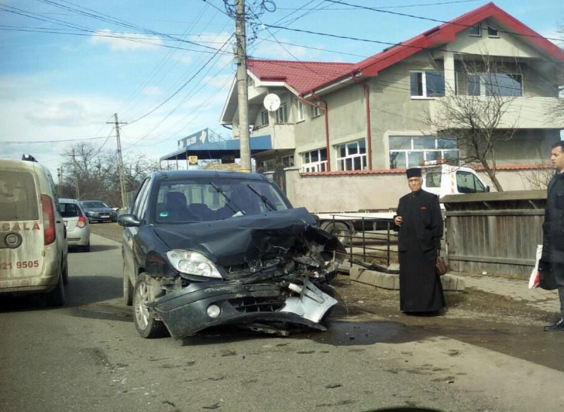 Un preot din Neamț și-a făcut bolidul praf, după ce a pierdut controlul volanului și a intrat pe contrasens. O femeie a fost dusă la spital