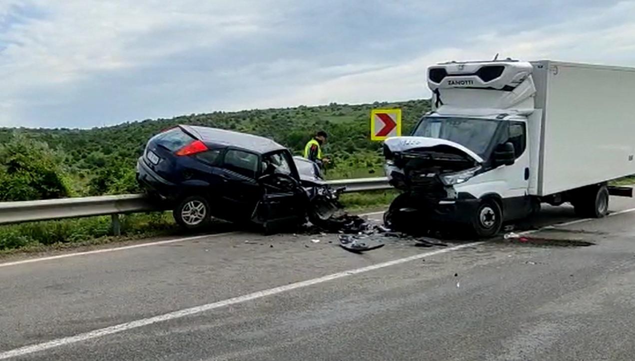 Un șofer beat și fără permis s-a urcat cu mașina pe un parapet, după ce a lovit o dubă pe contrasens, în Tulcea