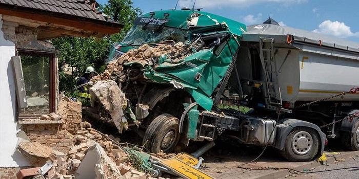 Un şofer de camion a intrat cu basculanta în casa unui alt şofer de camion, în Germania. Imagini teribile de la locul accidentului