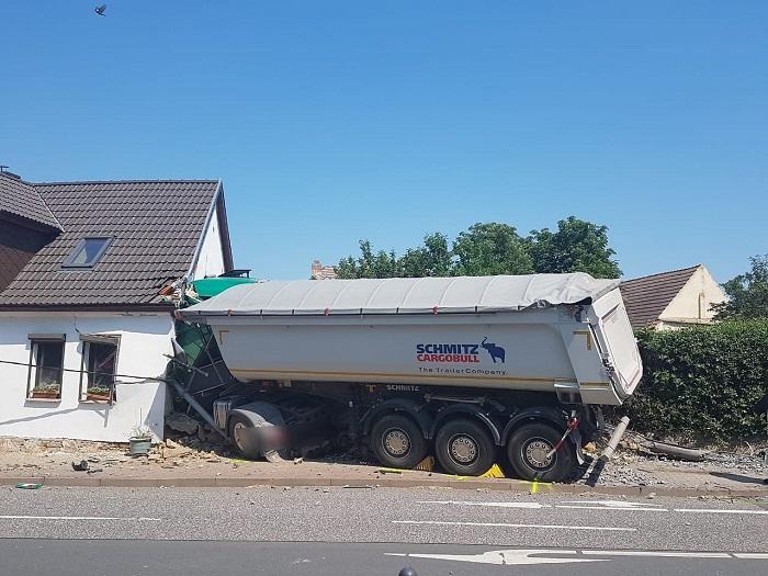 Un şofer de camion a intrat cu basculanta în casa unui alt şofer de camion, în Germania. Imagini teribile de la locul accidentului