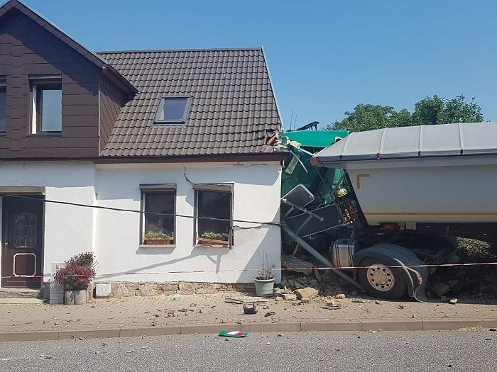 Un şofer de camion a intrat cu basculanta în casa unui alt şofer de camion, în Germania. Imagini teribile de la locul accidentului