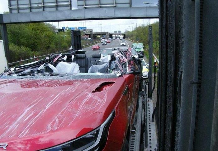 Un şofer de camion neatent a "decapitat" un SUV de 70.000 de euro, transformându-l într-o decapotabilă