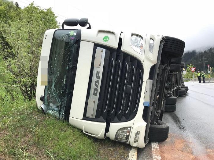 Un şofer român a adormit la volan şi s-a răsturnat cu camionul pe o şosea din Austria (video)