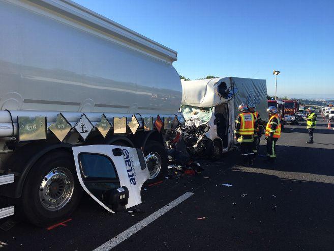 Un şofer român ar putea rămâne fără picioare, după ce camioneta condusă de el s-a făcut praf de o cisternă, pe o autostradă din Franţa