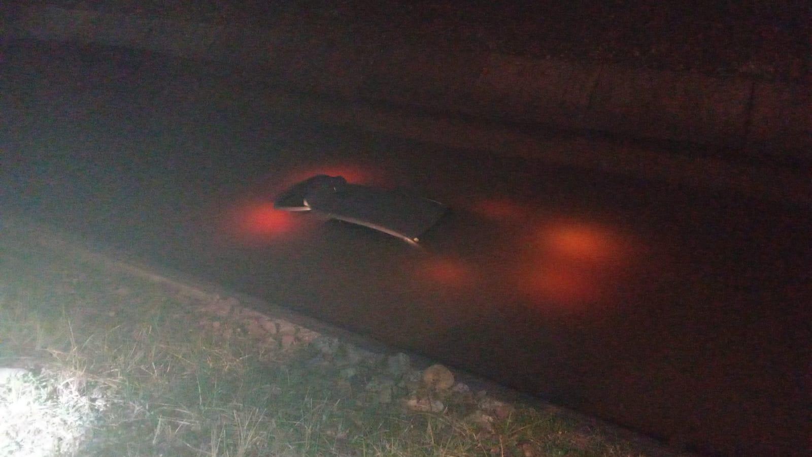 Un tânăr a plonjat cu mașina într-un canal cu apă, în Suceava. Polițiștii l-au ajutat pe șofer să ajungă pe malul betonat