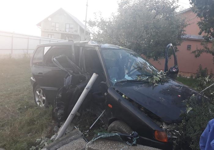 Un tânăr de 19 ani fără permis şi băut a făcut praf maşina, într-un gard de beton, şi a fugit, la Salcea, în Suceava. Un adolescent a murit