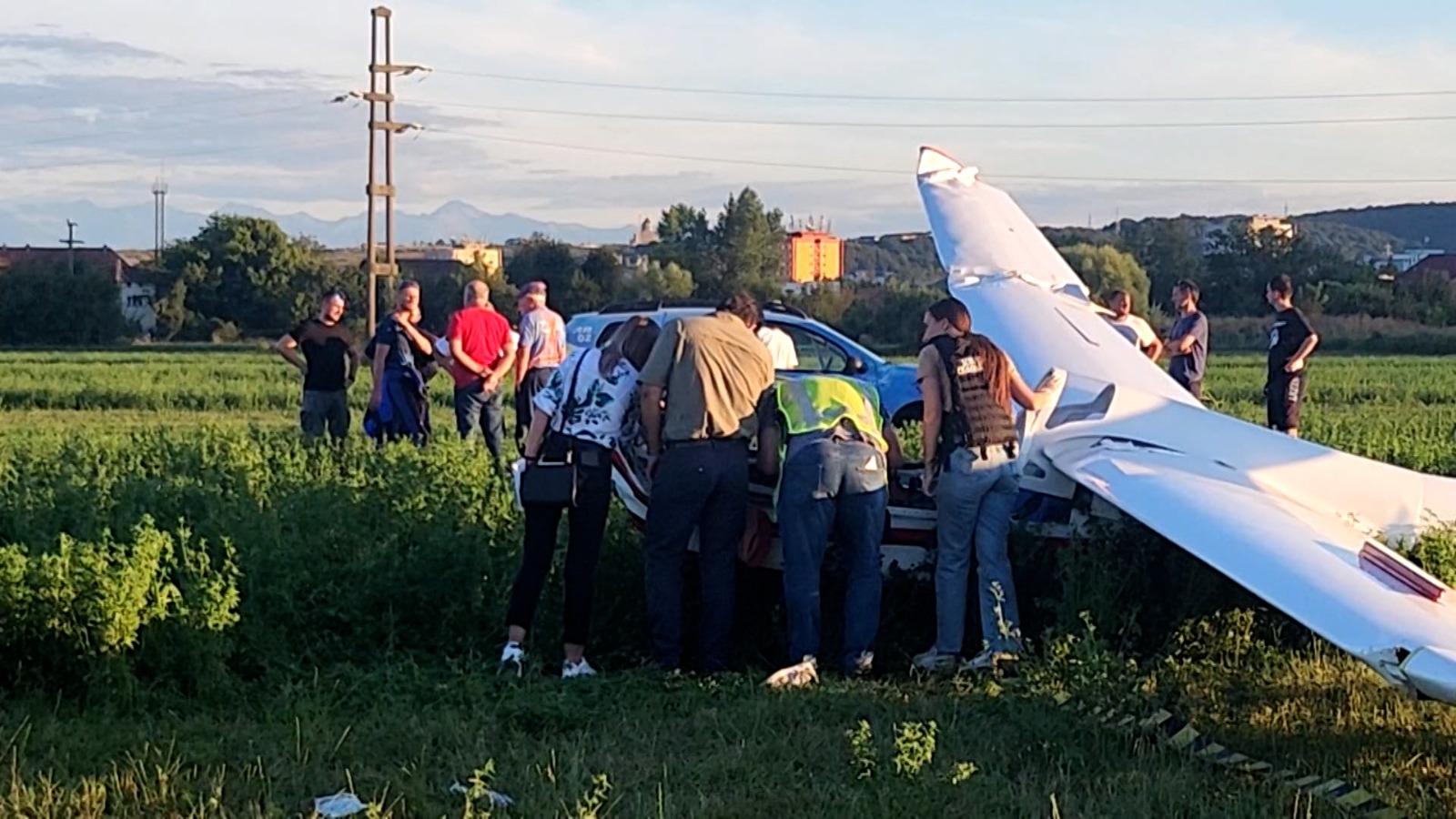 Un tânăr de 21 de ani a scăpat ca prin minune, după o aterizare forțată cu planorul pe un câmp din Deva