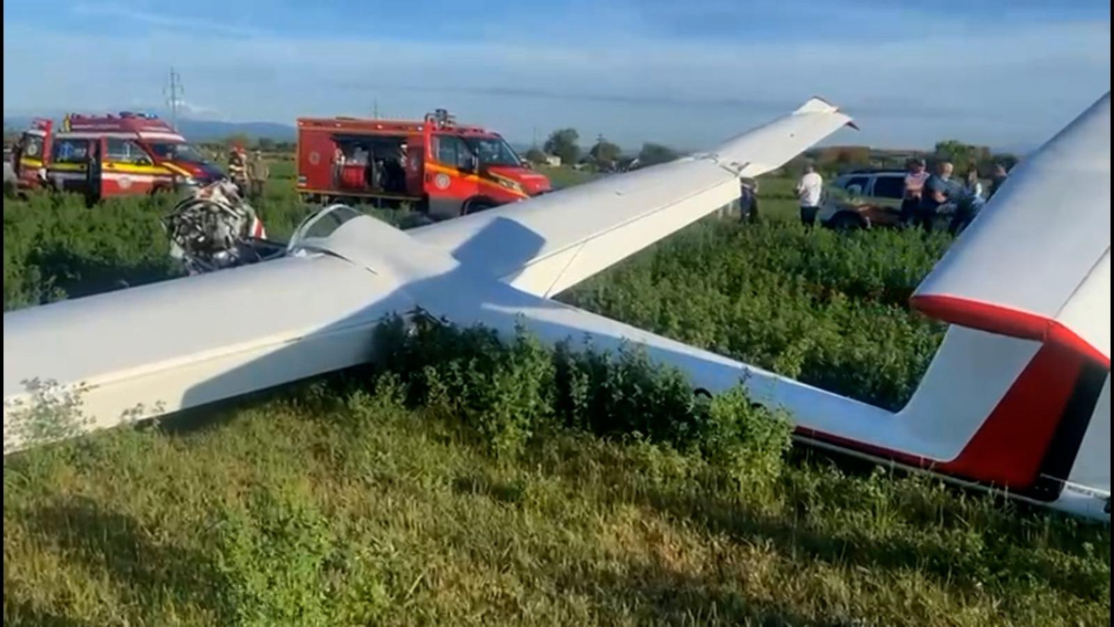 Un tânăr de 21 de ani a scăpat ca prin minune, după o aterizare forțată cu planorul pe un câmp din Deva