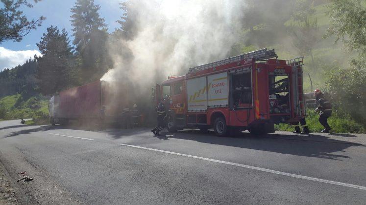 Un TIR care transporta cărbuni s-a transformat într-un uriaş grătar, după ce a luat foc pe o stradă din Neamţ