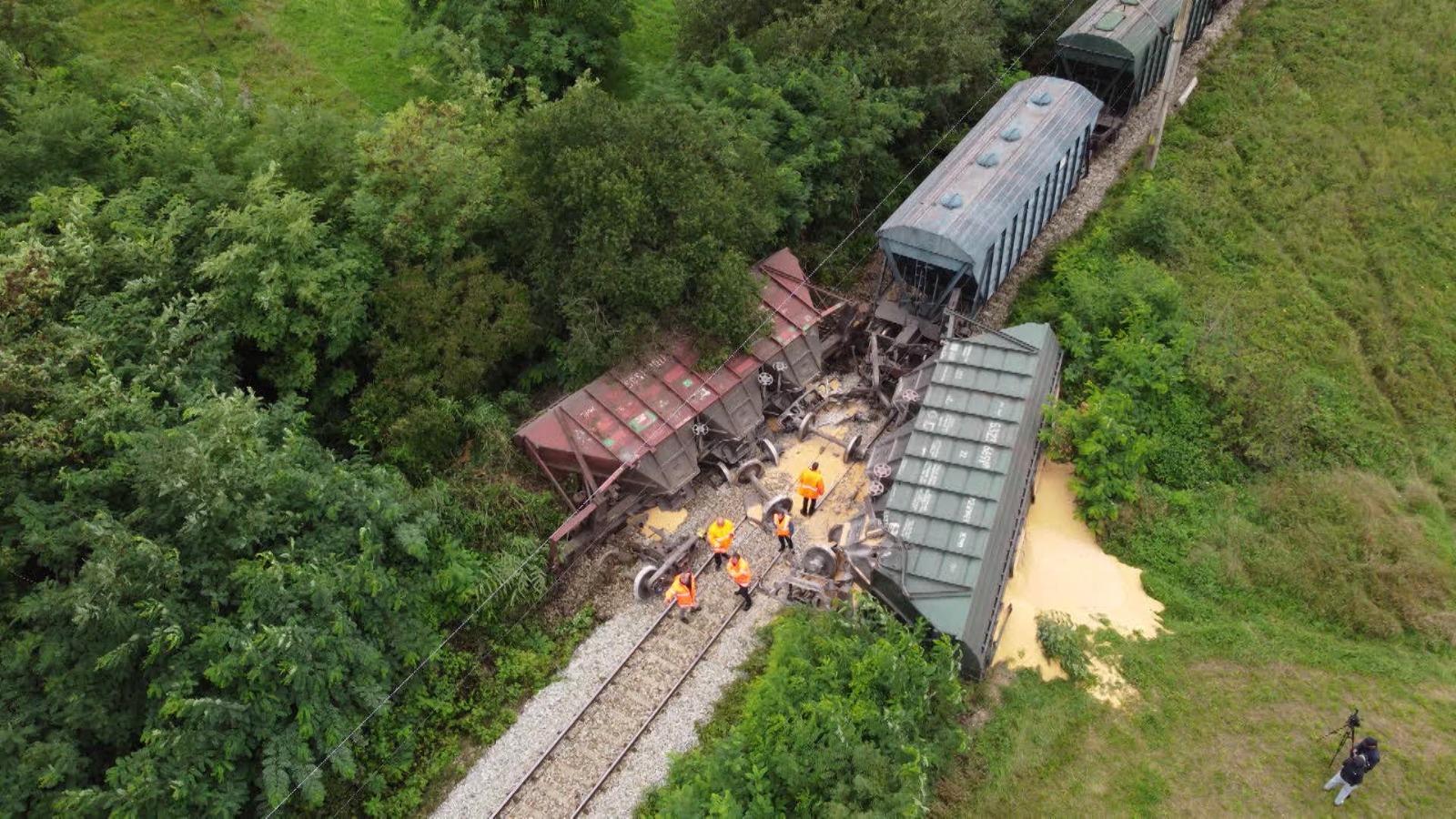 Un tren de marfă, plin cu cereale din Ucraina, a deraiat în Mureş. Două vagoane au sărit de pe şinele vechi de 80 de ani