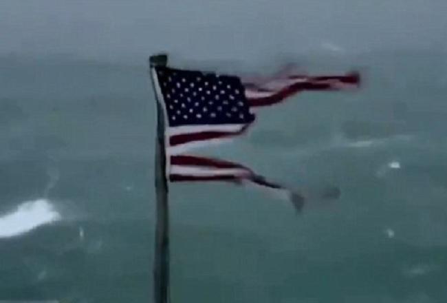 Un steag al SUA a fost rupt în două de puternicele rafale de vânt ale uraganului Florence | Sursa foto: Explore.org