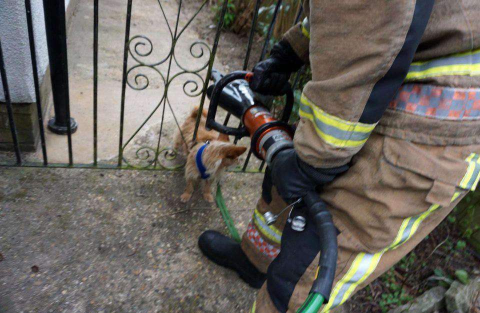 Urmărire cu final nefericit: Un căţel a rămas blocat în poarta de la grădină, după ce a fugărit o pisică FOTO