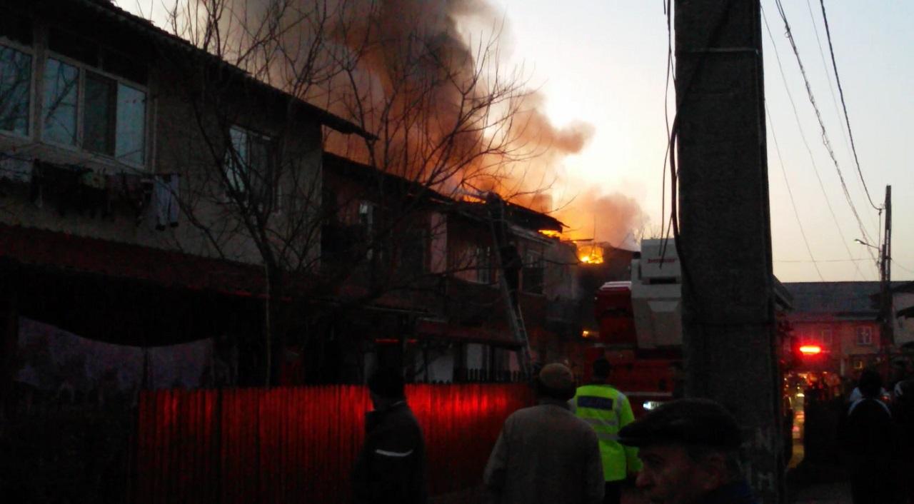VIDEO&FOTO Incendiu violent la Tg. Jiu. Trei maşini de pompieri, la faţa locului