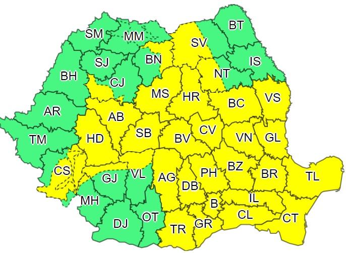 Avertizare meteo de vreme severă! Cod galben de averse şi vijelii pentru aproape toată ţara, până marţi de dimineaţă