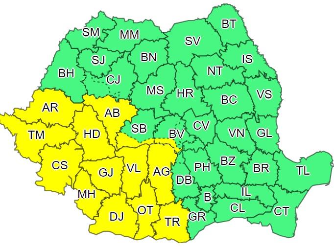 Avertizare meteo de vreme severă! Cod galben de averse şi vijelii pentru aproape toată ţara, până marţi de dimineaţă