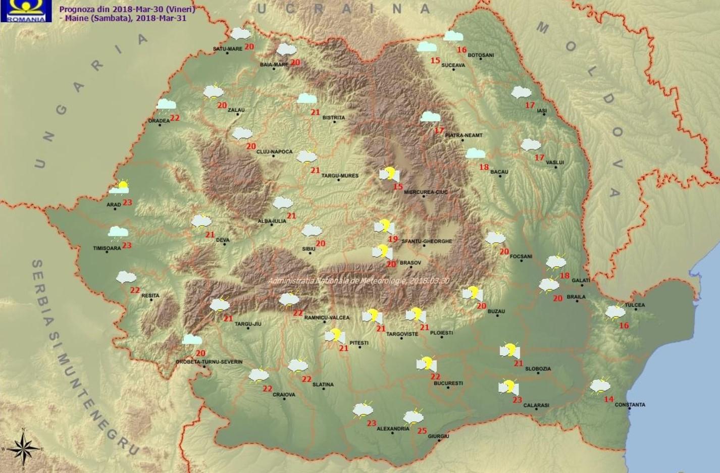 Vremea 31 martie, 1, 2 aprilie 2018. ANM anunţă schimarea radicală a vremii, va ninge pe alocuri | Sursa foto: Administratia Nationala de Meteorologie-Prognoza