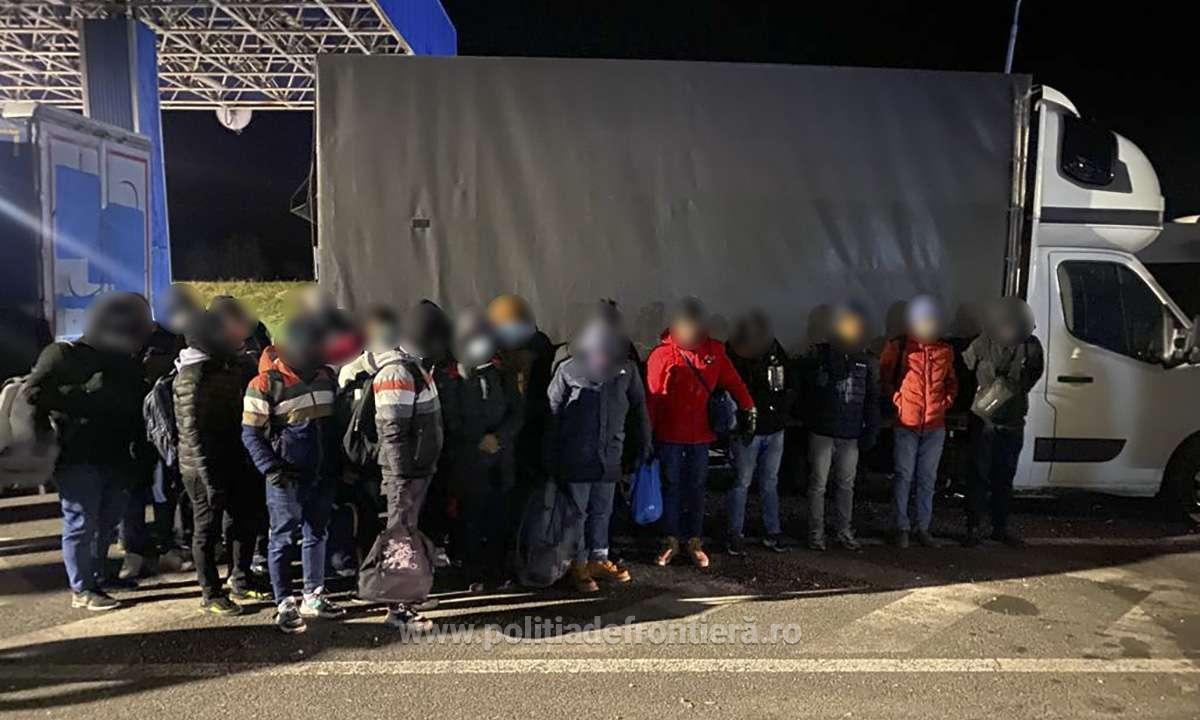 Zeci de migrați înghesuiți printre paleți, cabluri și profile de aluminiu, în două TIR-uri care ieșeau din România. Încercau să ajungă ilegal în Ungaria