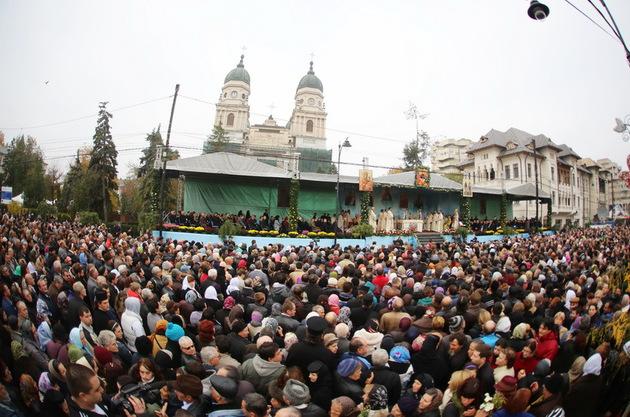 Zeci de preoţi au purtat moaştele a trei sfinţi pe străzile din Iaşi. Mii de credincioşi i-au urmat prin ploaie