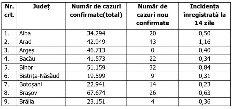 COVID-19. Lista cazurilor pe judeţe 2 ianuarie 2022