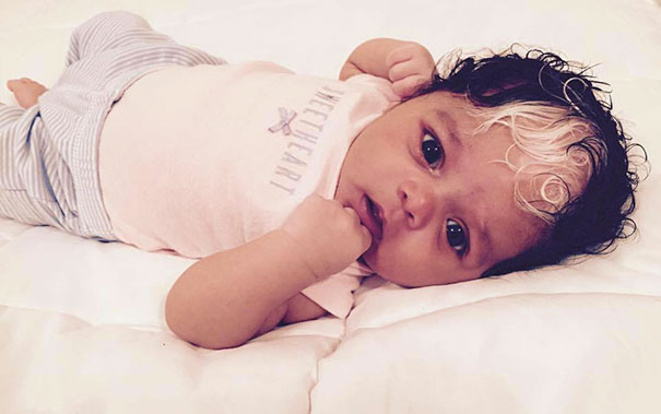 Nu-i aşa că e adorabilă? Ea e MilliAnna, o mogâldeaţă de 18 luni care le moşteneşte pe mama, bunica şi străbunica ei: S-a născut cu un smoc alb în frunte (FOTO)