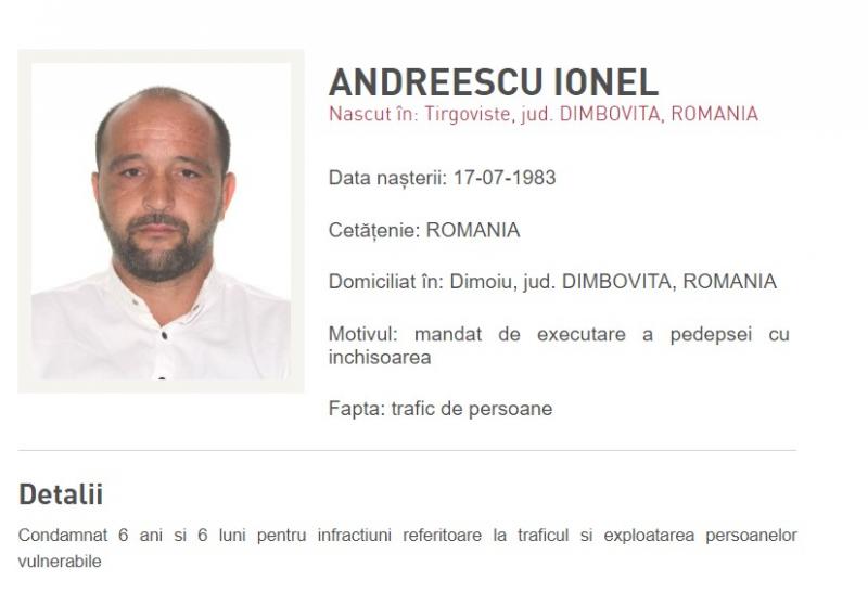 - Andreescu Ionel a fost condamnat la 6 ani și 6 luni de închisoare pentru trafic de minori. A fost adus din Marea Britanie, unde a fugit după ce justiția din România l-a condamnat pentru că a exploatat persoane vulnerabile.