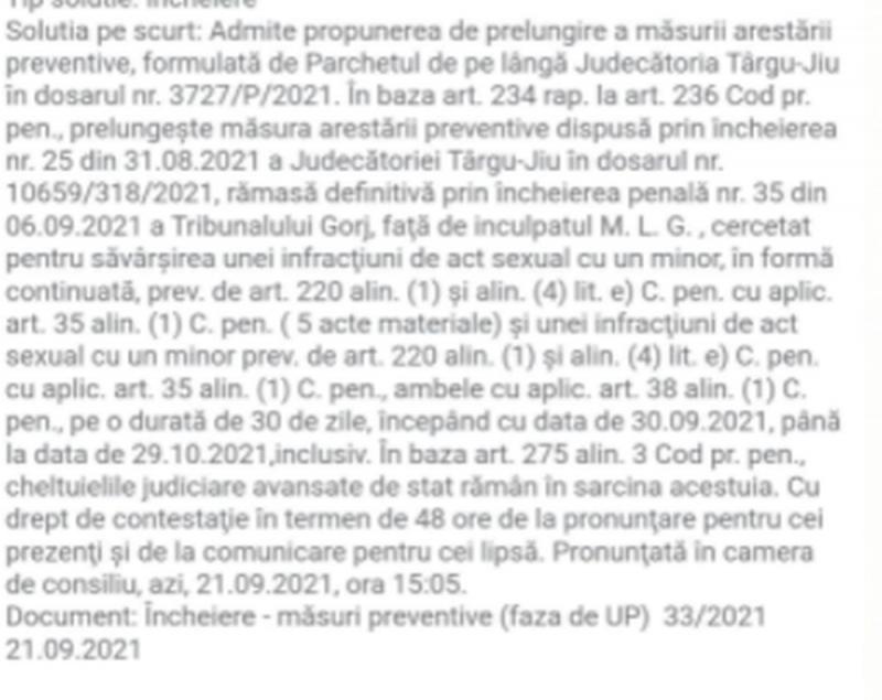 Omul de afaceri gorjean, care a abuzat de două adolescente, rămâne în spatele gratiilor pentru încă 30 de zile. Decizia nu este definitivă şi poate fi atacată.