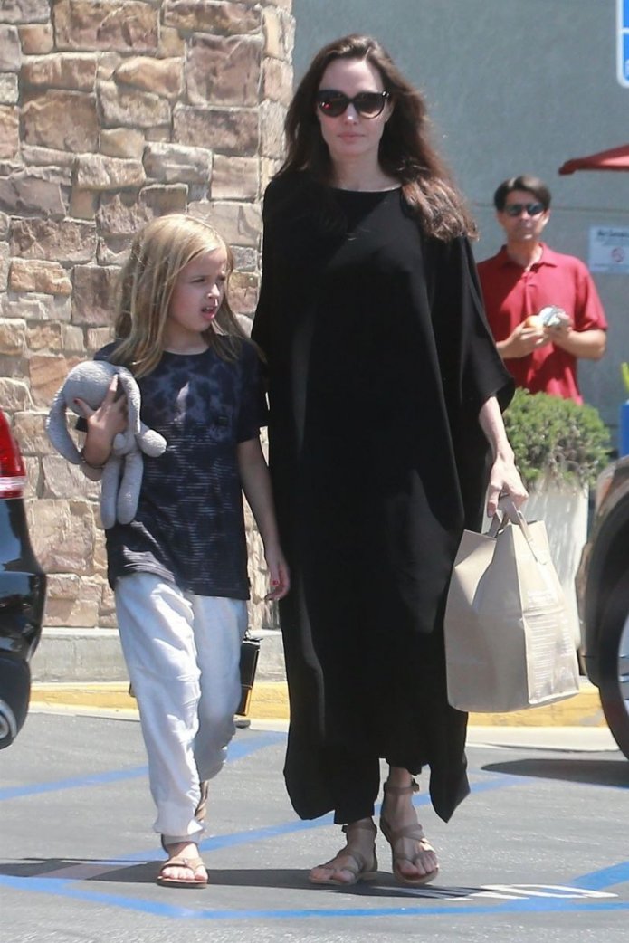 Actriţa a îmbrăcat o rochie neagră, lungă, asemănătoare cu cele purtate de femeile musulmane, cu ocazia unei şedinţe de shopping alături de fiica ei, Vivienne Jolie-Pitt, în Los Feliz, California.