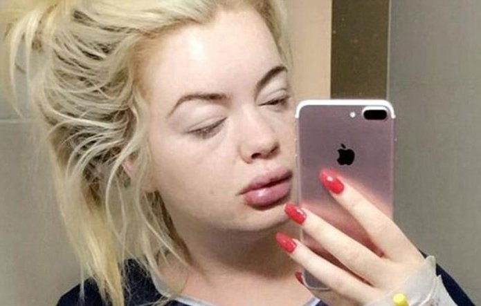 Ea a postat fotografii pe social media, arătându-şi fața umflată după ce a suferit o reacție alergică severă la anestezicul folosit în timpul operației din Turcia.
